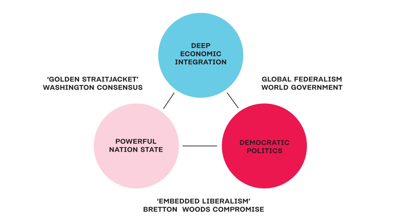 Teori ini menggambarkan upaya keras negara-negara di dunia untuk mencapai tiga tujuan utama, yakni kedaulatan nasional, integrasi ekonomi, dan tata kelola demokratis secara bersamaan